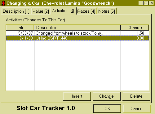Screen Shots: Main | Description | Value | Activities | Races | Race Detail | Notes