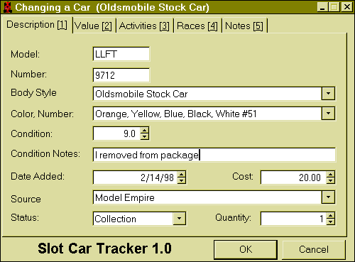 Screen Shots: Main | Description | Value | Activities | Races | Race Detail | Notes